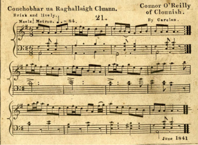 The first movement, “Allegro con fuoco,” opens with a chromatic ascent and horn call. With its tempestuousness, the music reflects sonically the concepts conveyed by the lyrics of Beach’s song “Dark is the Night.” These emotive passages are subsequently replaced by a lively jig, which is a traditional Irish dance. This jig incorporates the tune from the song “Conchobhar ua Raghallaigh Cluann” (“Connor O’Reilly of Clounish.”) Listen for the oboe to introduce the tune, then pay attention to the flute, who “answers” the oboe, but in a way that might seem “out of sync.” The mood of this movement changes regularly, creating the sense of distinct sections. Consider the extent to which certain features are repeated or referenced in later iterations. Note also the exchanges between the winds and strings and the ways in which they convey “Irishness.”