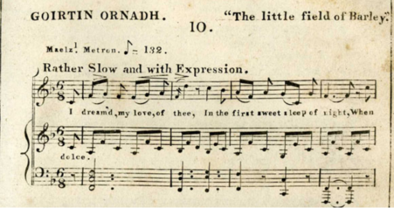 The opening section (of three) in the second movement is marked “Alla siciliana,” which refers to a dance of the same name, the siciliana. Typically, this dance conveys as sense of pastoralism, evidenced here by the use of horns and double reeds to signify shepherds. The movement opens with the French horn and strings, who hint at the siciliana, but it is the oboe that gives the first full iteration of the dance, with its characteristic dotted rhythm and subsequent triplet. Here, the tune “Goirtin Ornadh” (“The little field of Barley”) is set to the distinctive rhythm, but the melodic contour of Beach’s siciliana remains faithful to the original tune. Joined by pairs of clarinets and bassoons, and then a flute and French horns, the siciliana is rendered without strings. The movement changes character when the strings reenter at “Allegro vivace,” and snippets of the siciliana rhythm are juxtaposed with strong syncopation under running sixteenth notes. In the last section of the movement, “Andante,” the full siciliana returns in the English horn, rounding out the bucolic ambiance, but a flashback to the quick runs and syncopation close the movement.